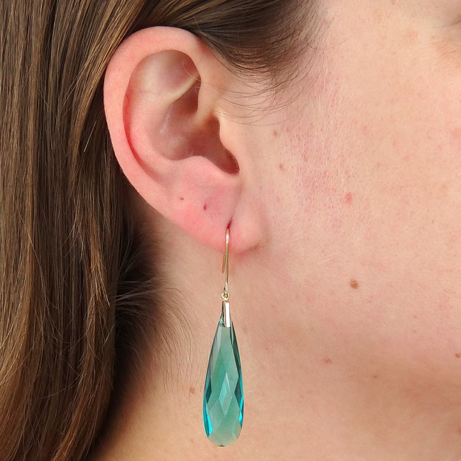 Par de Brincos com Cristal de Turmalina Paraíba Gota, em Ouro Amarelo 18 Kilates