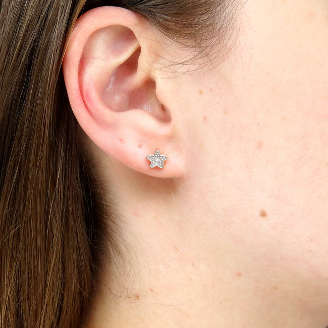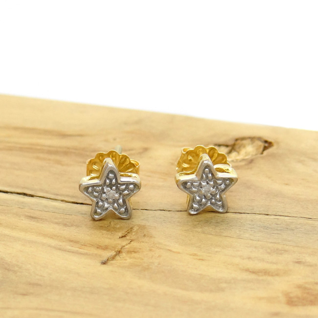 Par de Brincos Estrela com Diamantes, em Ouro Amarelo 18 Kilates