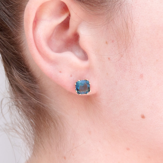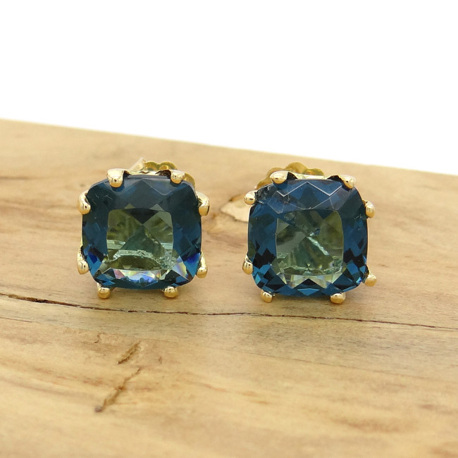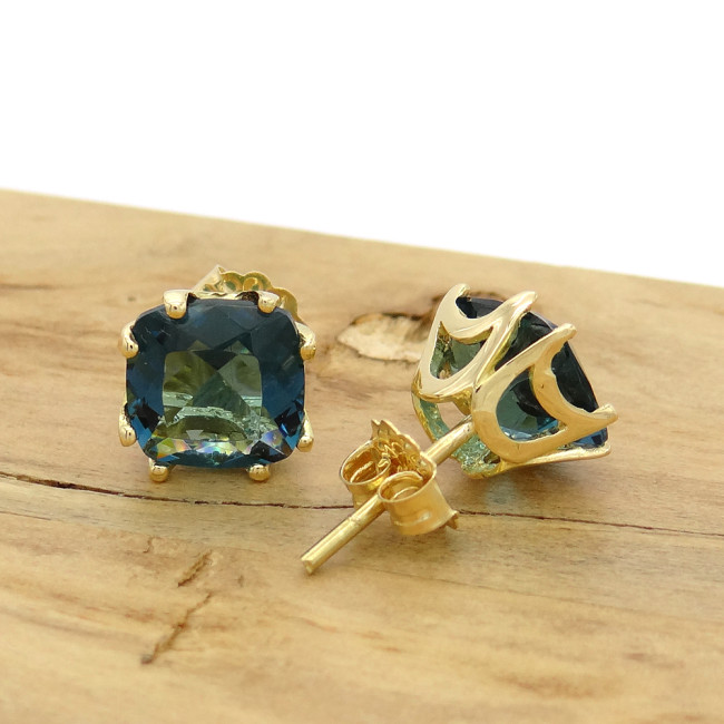 Par de Brincos com London Blue, em Ouro Amarelo 18 Kilates