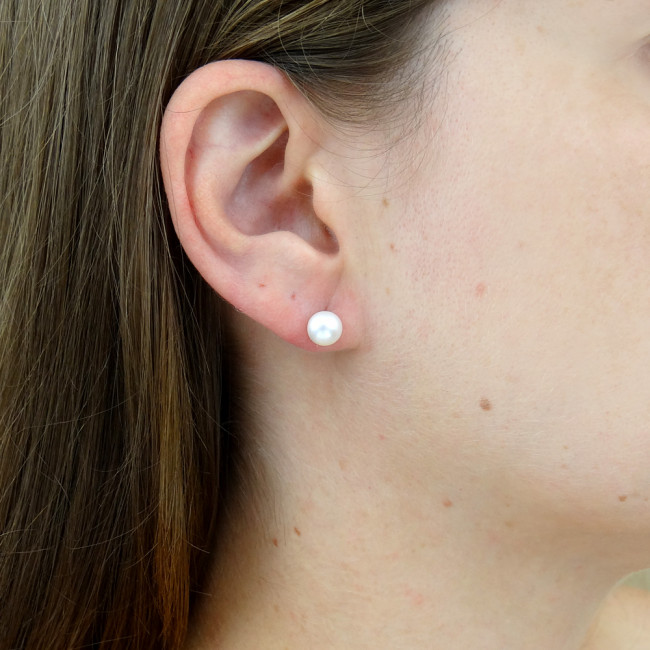 Par de Brincos com Pérolas Naturais de 7 mm, em Ouro Amarelo 18 Kilates