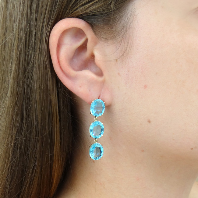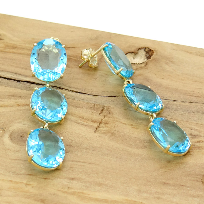 Par de Brincos com Sky Blue, em Ouro Amarelo 18 Kilates