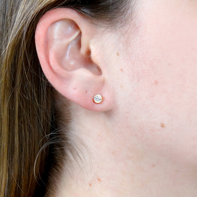 Par de Brincos Cravação Inglesa Totalizando de 40 Pontos Diamantes, em Ouro Amarelo 18 Kilates