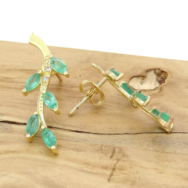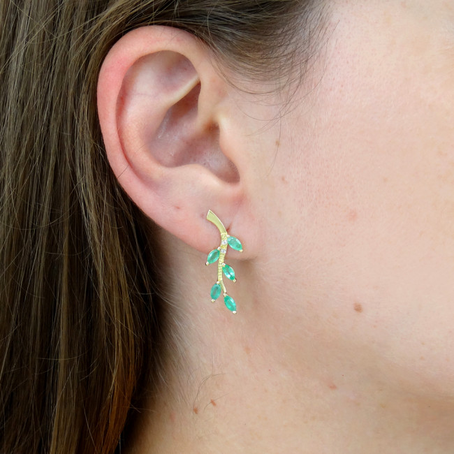 Par de Brincos Flora com 10 Esmeralda Totalizando 1,5 ct e 4 Diamantes, em Ouro Amarelo 18 Kilates