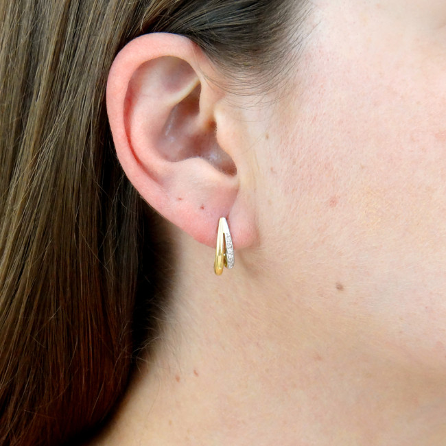 Par de Brincos Meia Argola com 12 Diamantes, Totalizando 12 Pontos, em Ouro Amarelo 18 Kilates