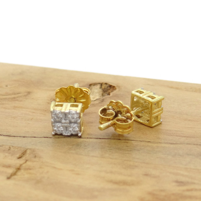 Par de Brincos Quadrado com 8 Diamantes, em Ouro 18 Kilates