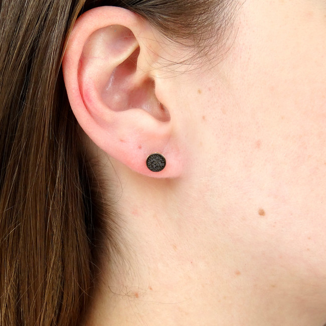 Par de Brincos Redondo com 8 Diamantes Negros, em Ouro Amarelo 18 Kilates