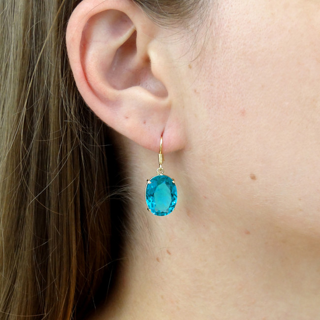 Par de Brincos Sky Blue Oval, em Ouro Amarelo 18 Kilates