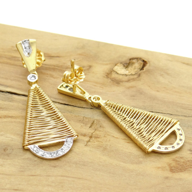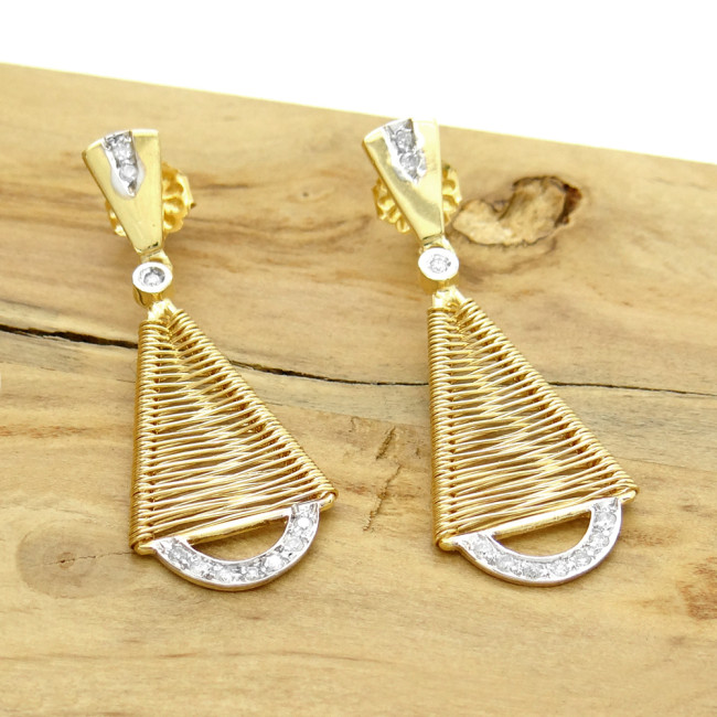 Par de Brincos Aramado com Diamantes, em Ouro 18 Kilates