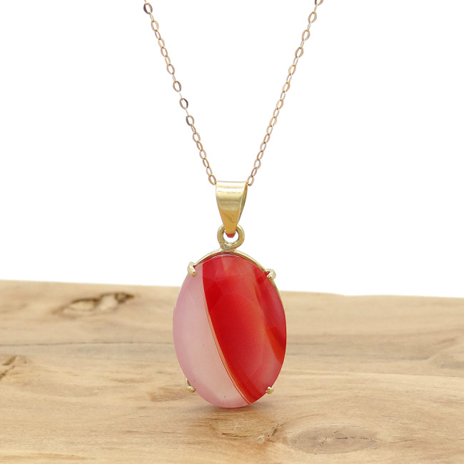 Pingente Ágata de Fogo, em Ouro Amarelo 18 Kilates