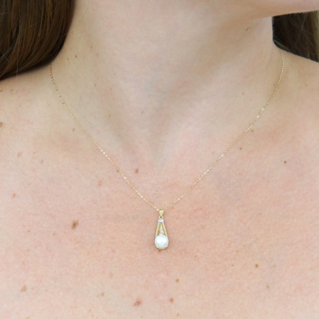 Pingente Aramado com Pérola Natural de 7 mm, em Ouro Amarelo 18 Kilates