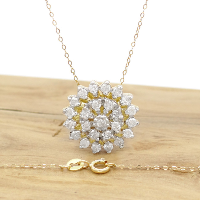 Pingente Chuveiro com 25 Diamantes Totalizando 25 Pontos, em Ouro Amarelo 18 Kilates