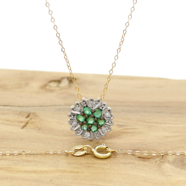 Pingente Chuveiro com 7 Esmeraldas e 6 Diamantes, em Ouro Amarelo 18 Kilates