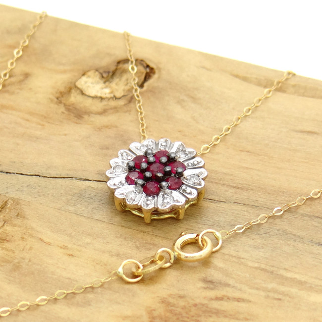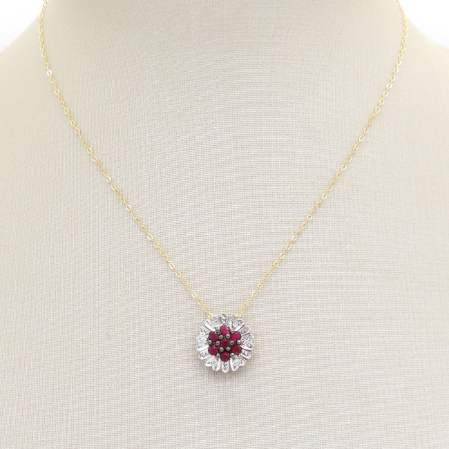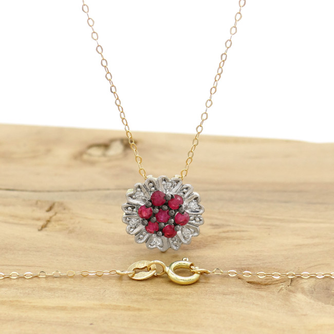 Pingente Chuveiro com 7 Rubis e 6 Diamantes, em Ouro Amarelo 18 Kilates