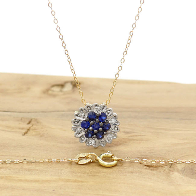 Pingente Chuveiro com 7 Safiras e 6 Diamantes, em Ouro Amarelo 18 Kilates