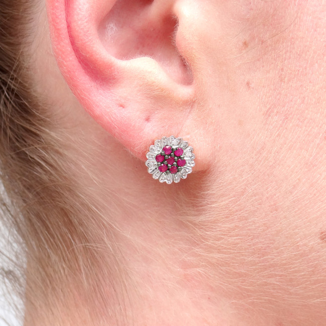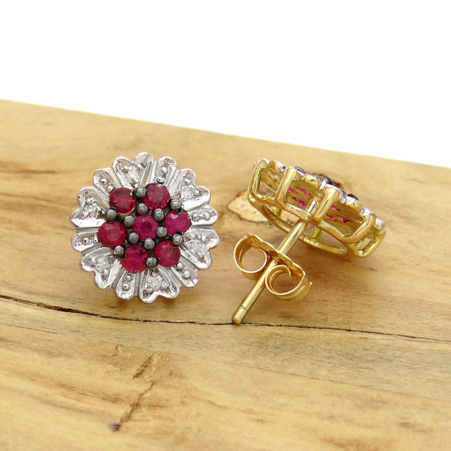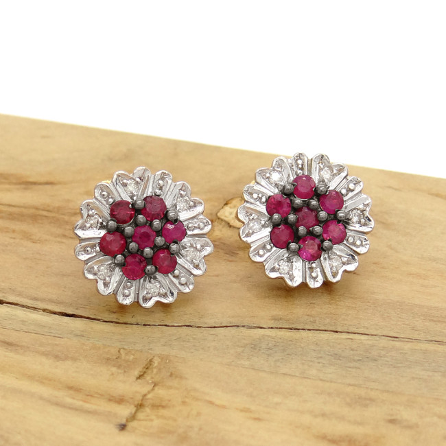 Par de Brincos Chuveiro com Rubis e Diamantes, em Ouro Amarelo 18 Kilates