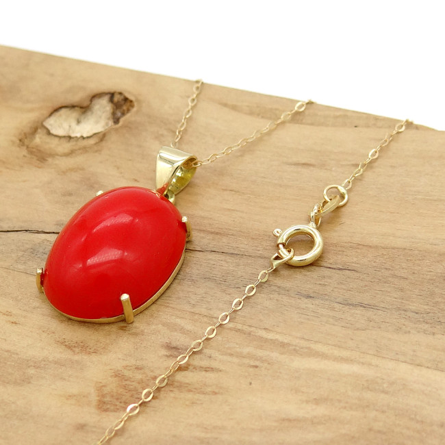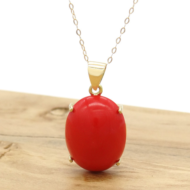 Pingente com Coral Cabochon, em Ouro Amarelo 18 Kilates