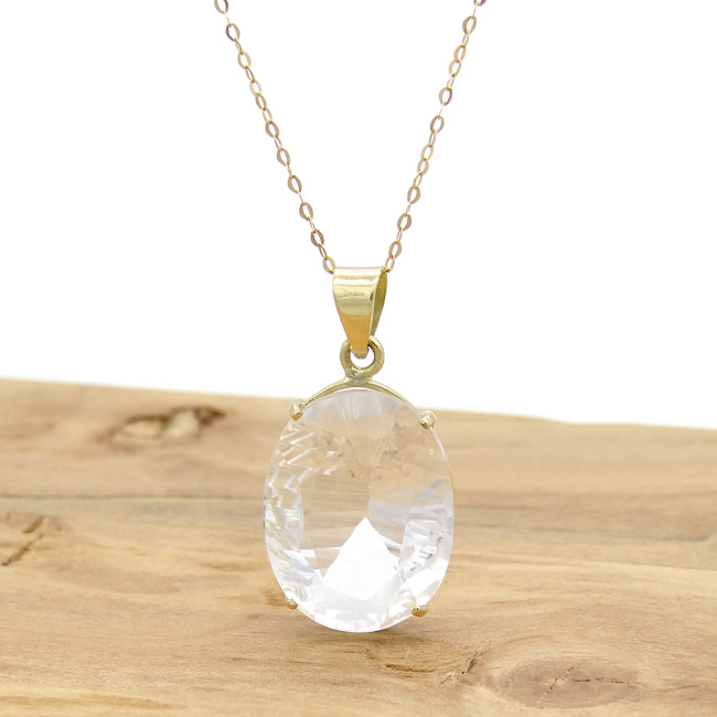 Pingente Cristal de Rocha, em Ouro Amarelo 18 Kilates