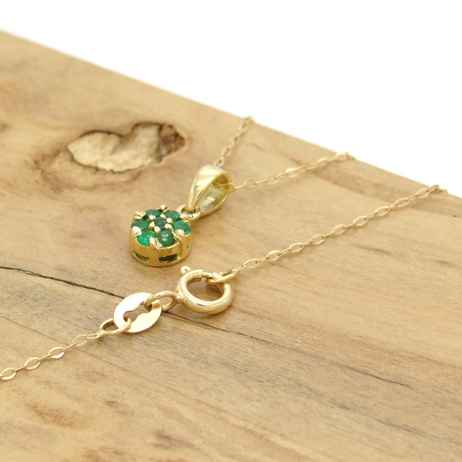 Pingente Chuveiro com 7 Esmeraldas, em Ouro Amarelo 18 Kilates