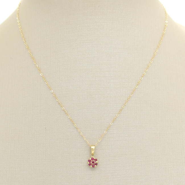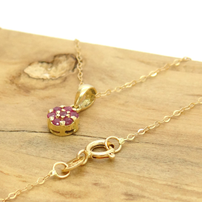 Pingente Chuveiro com 7 Rubis em Ouro Amarelo 18 Kilates