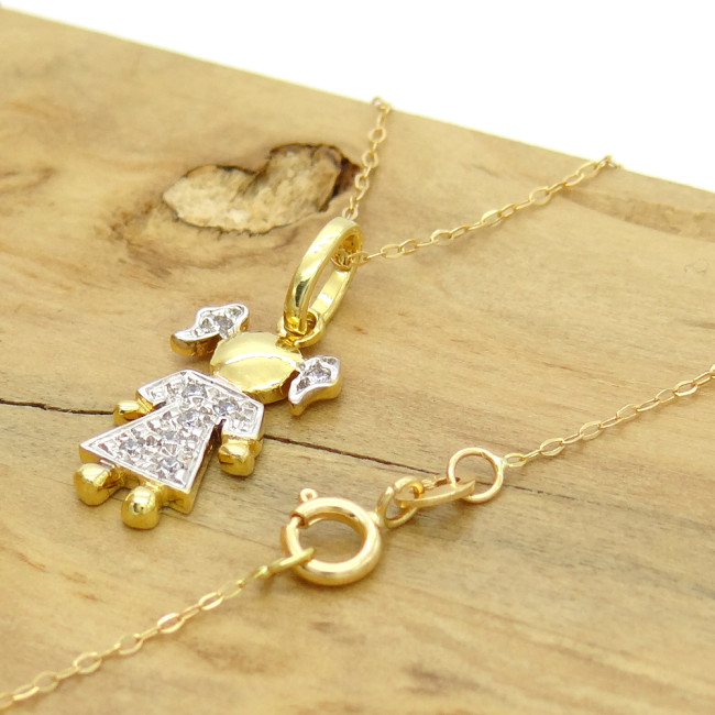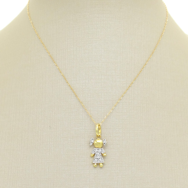 Pingente Menina com 8 Diamantes, em Ouro Amarelo 18 Kilates