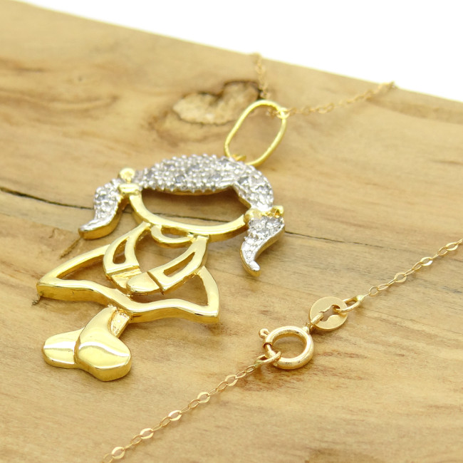 Pingente Menina com 9 Diamantes, em Ouro Amarelo 18 Kilates