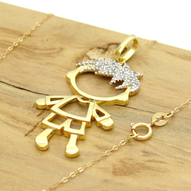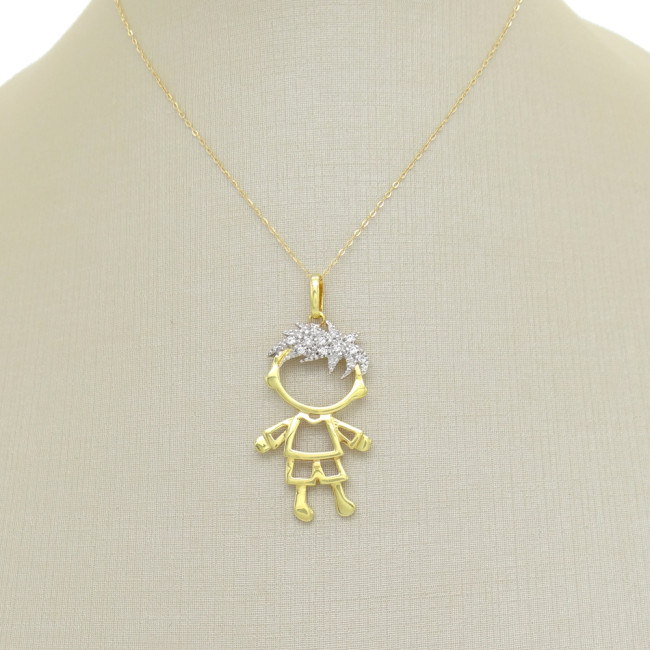 Pingente Menino com 11 Diamantes, em Ouro Amarelo 18 Kilates