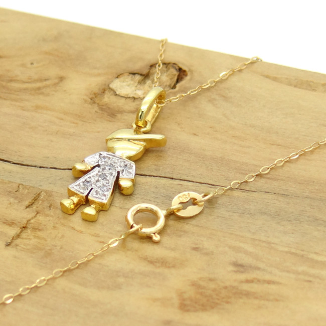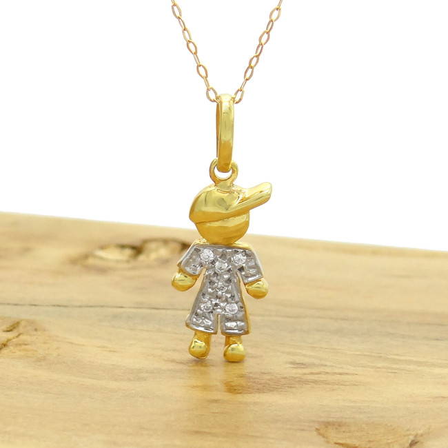 Pingente Menino com 6 Diamantes, em Ouro Amarelo 18 Kilates