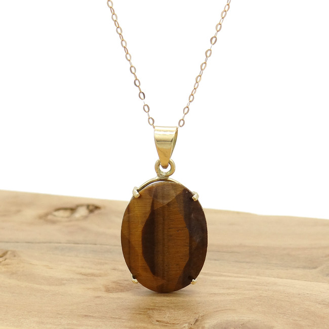 Pingente Olho de Tigre, em Ouro Amarelo 18 Kilates