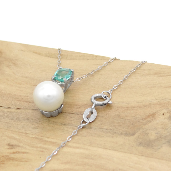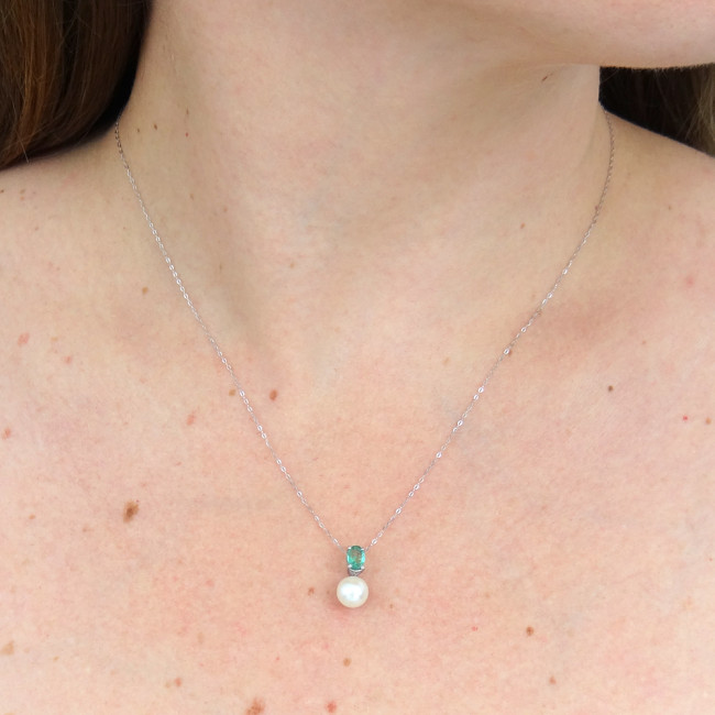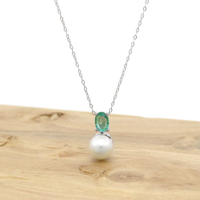 Pingente Pérola com Esmeralda, em Ouro Branco 18 Kilates