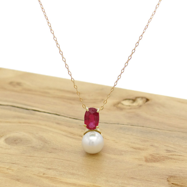 Pingente Pérola com Rubi, em Ouro Amarelo 18 Kilates