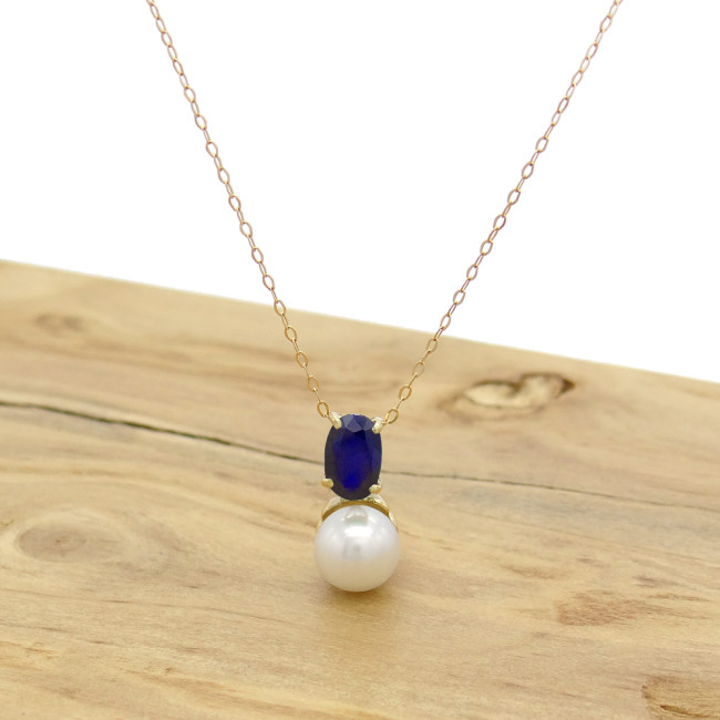 Pingente Pérola com Safira, em Ouro Amarelo 18 Kilates