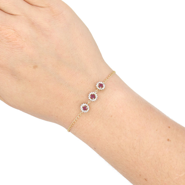 Pulseira com 3 Rubi e 42 Diamantes, em Ouro Amarelo 18 Kilates