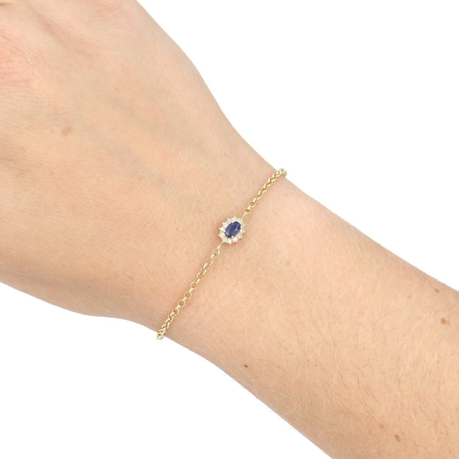 Pulseira com Safira e 12 Diamantes, em Ouro Amarelo 18 Kilates