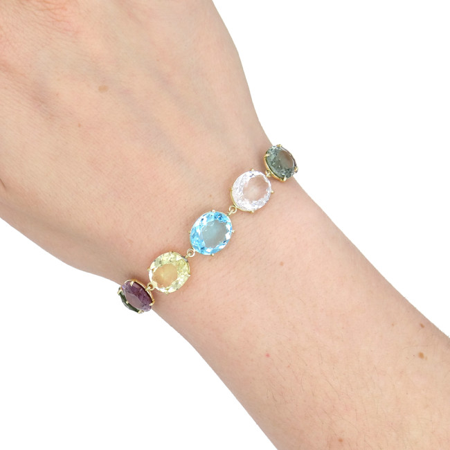Pulseira Mix de Gemas Brasileiras, em Ouro Amarelo 18 Kilates