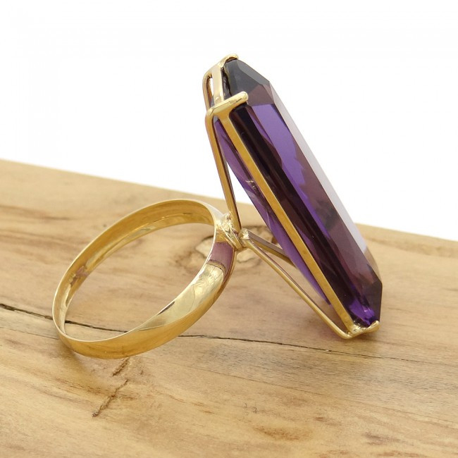 Anel Baguete com Ametista, Folheado a Ouro 18 Kilates, em Prata 925