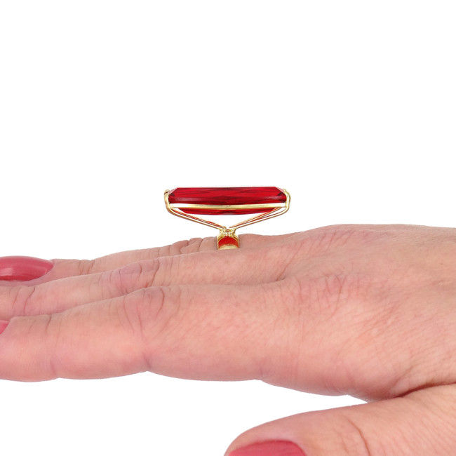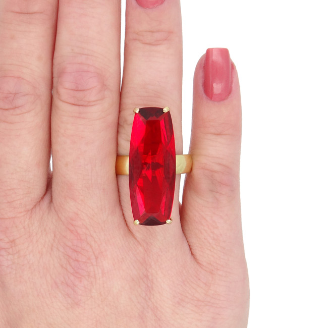 Anel Baguete com Quartzo Rubi, Folheado a Ouro 18 Kilates, em Prata 925