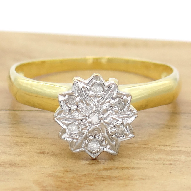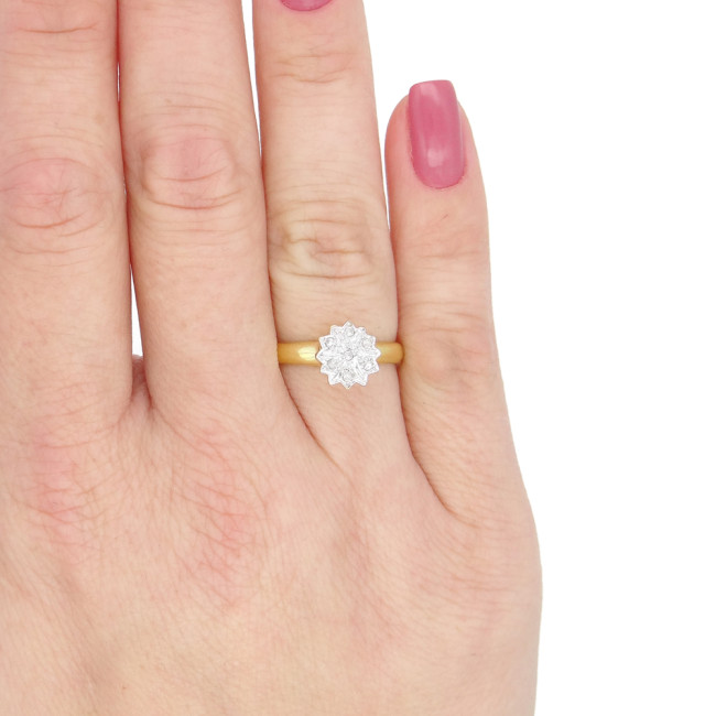Anel Chuveiro com 7 Diamantes, Folheado a Ouro Amarelo 18 Kilates, em Prata 925