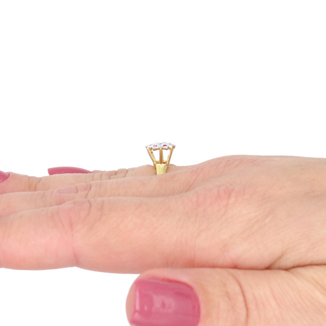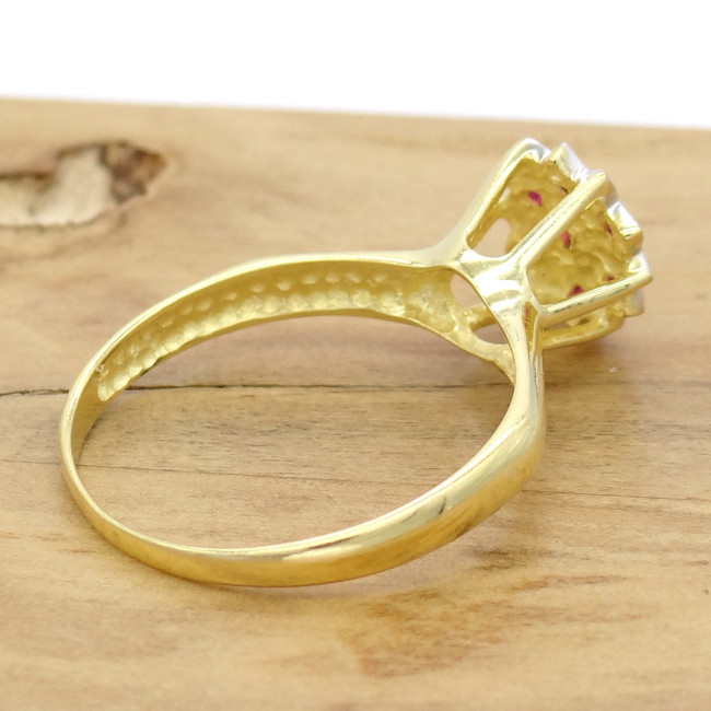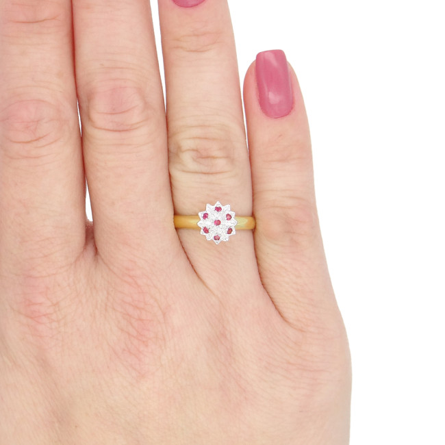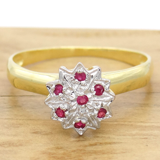 Anel Chuveiro com 7 Rubis, Folheado a Ouro 18 Kilates, em Prata 925