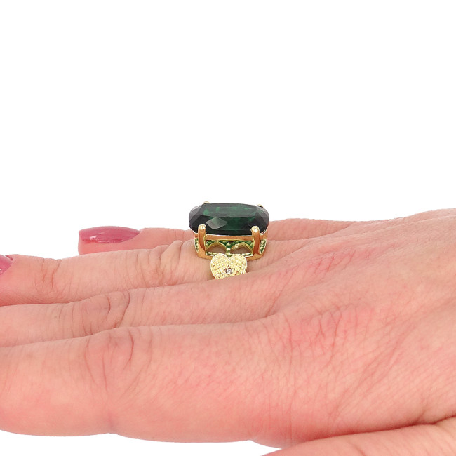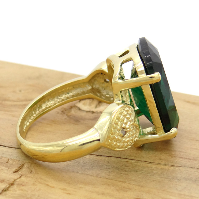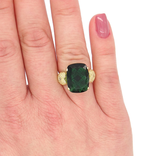 Anel com Diamantes e Cristal Blue Green, em Prata 925 Folheado a Ouro