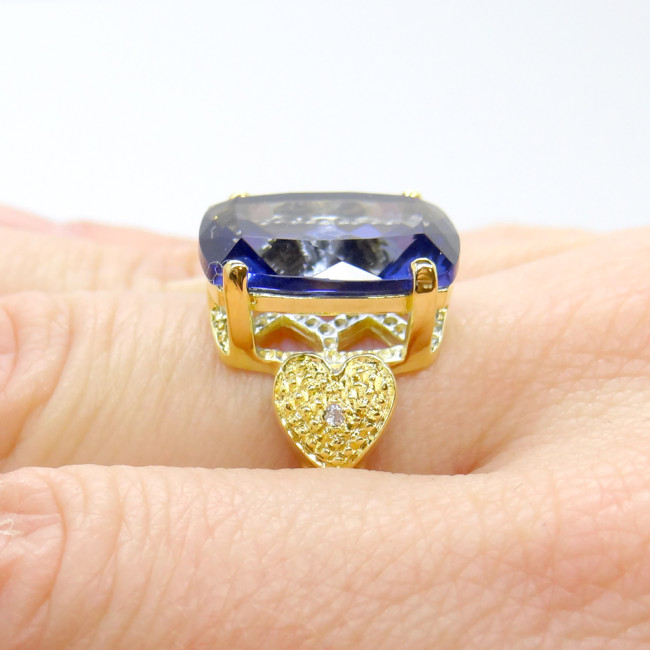 Anel com Diamantes e Cristal Tanzanita, em Prata 925 Folheado a Ouro