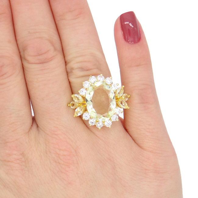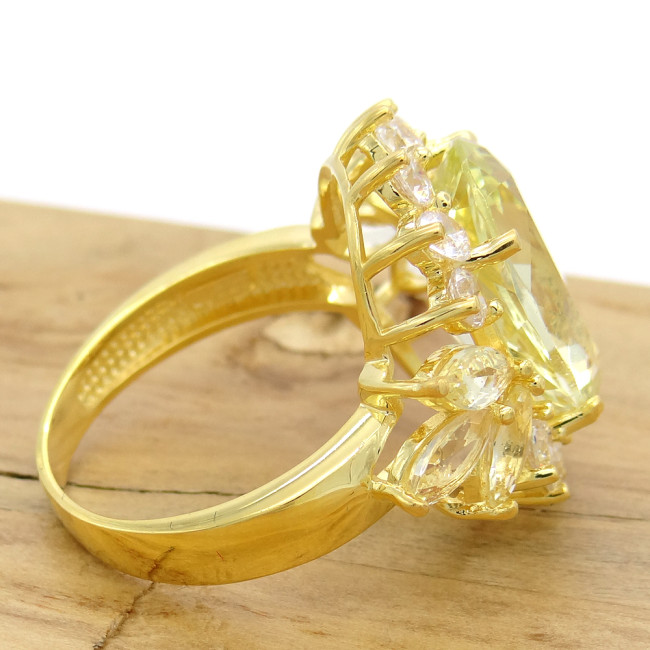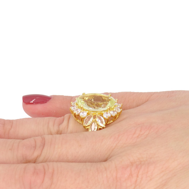 Anel com Green Gold e Zircônias, em Prata 925 Folheado a Ouro