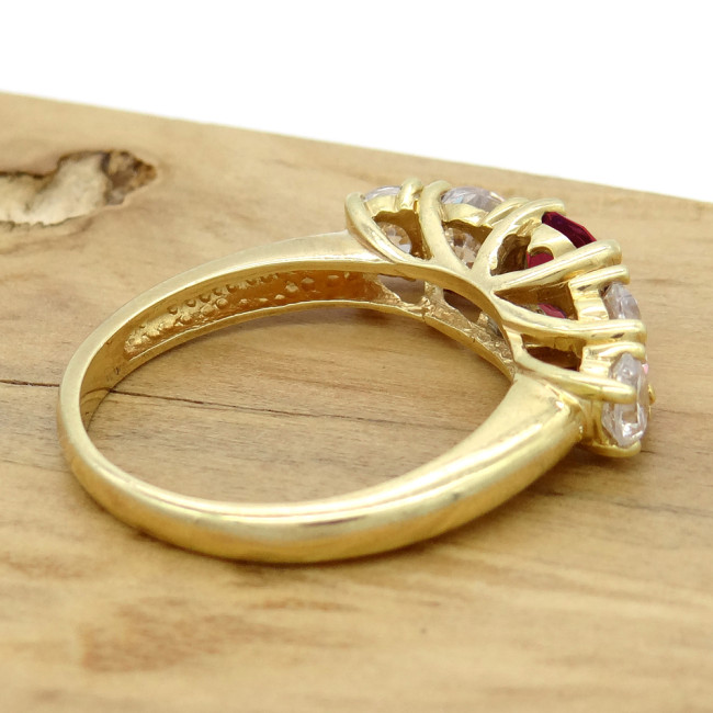 Anel com Quartzo Rubi e Zircônias, em Prata 925 Folheado a Ouro Amarelo 18 Kilates