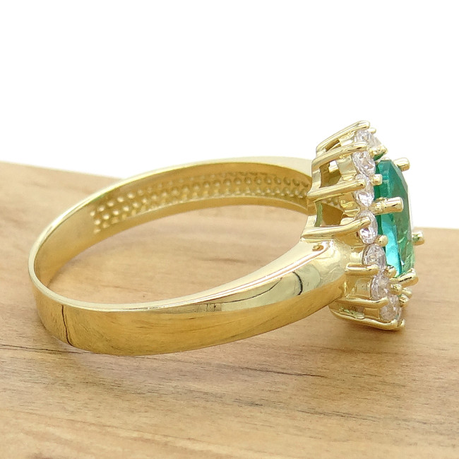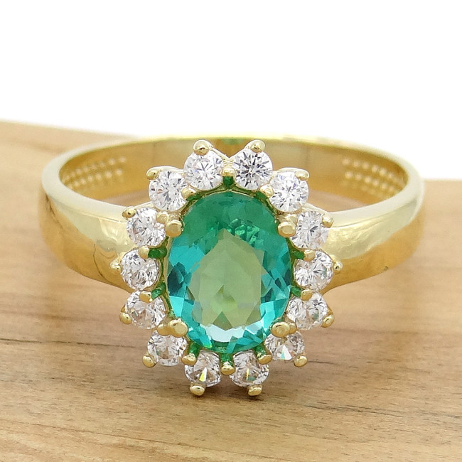 Anel Princess com Cristal de Turmalina Paraíba e Zircônias, em Prata 925 Folheado a Ouro Amarelo 18 Kilates