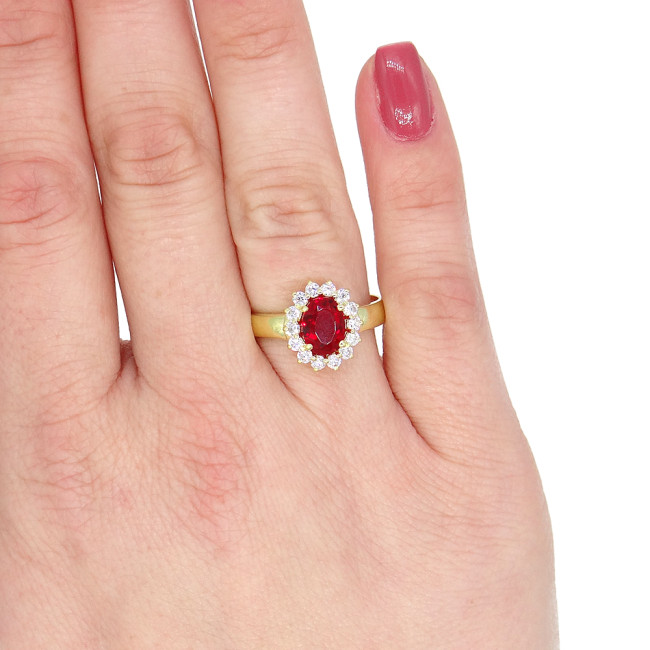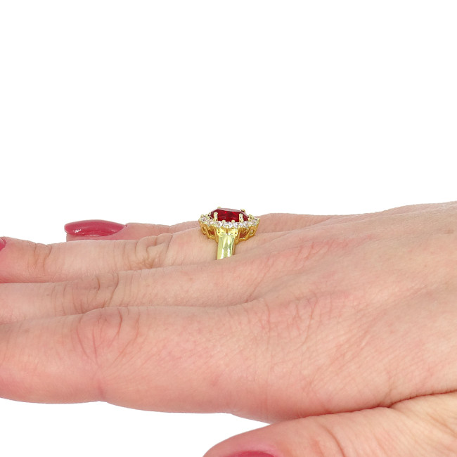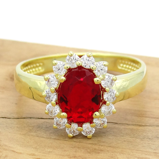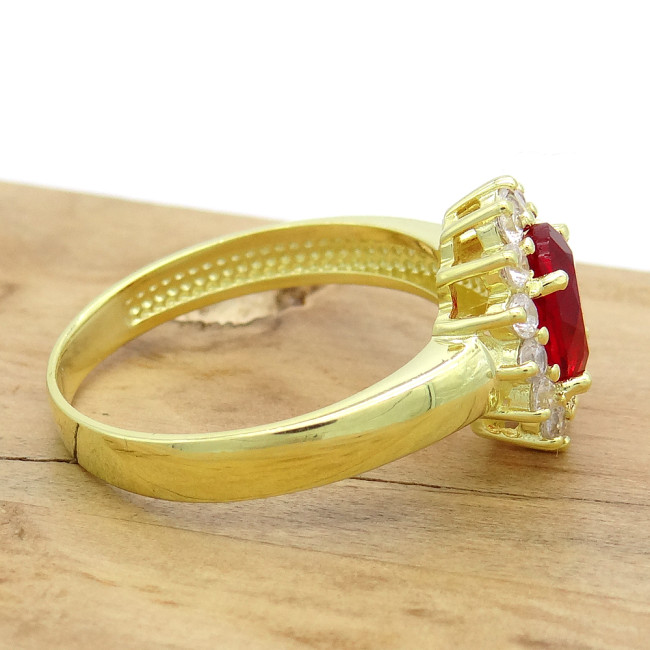 Anel Princess com Quartzo Rubi e Zircônias, em Prata 925 Folheado a Ouro Amarelo 18 Kilates