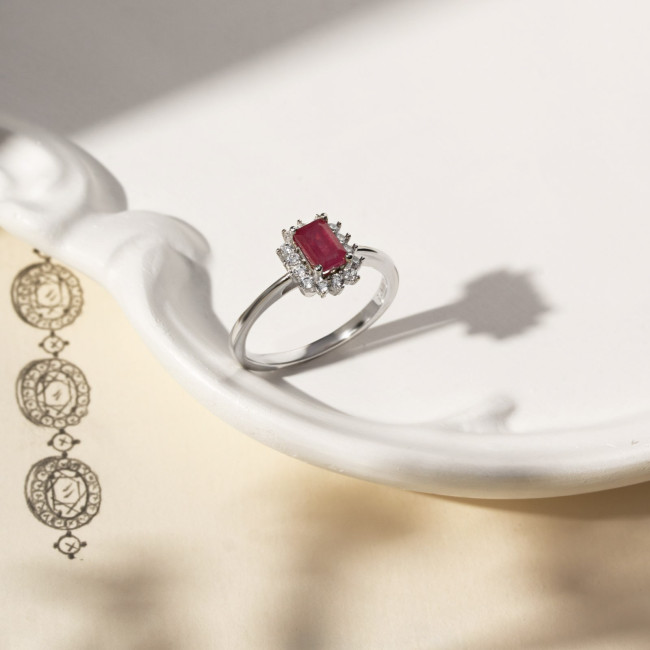 Rubi Natural Retangular de 85 Pontos e 14 Moissanites