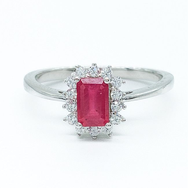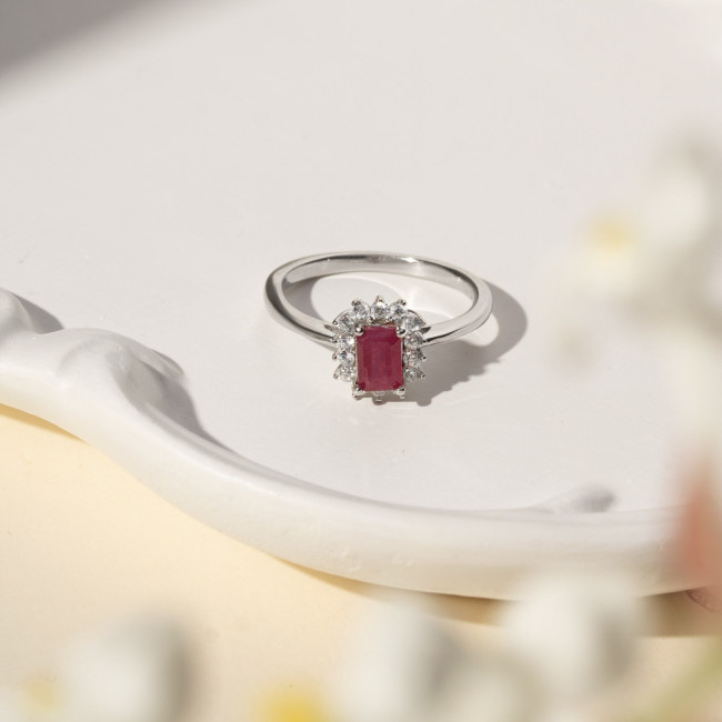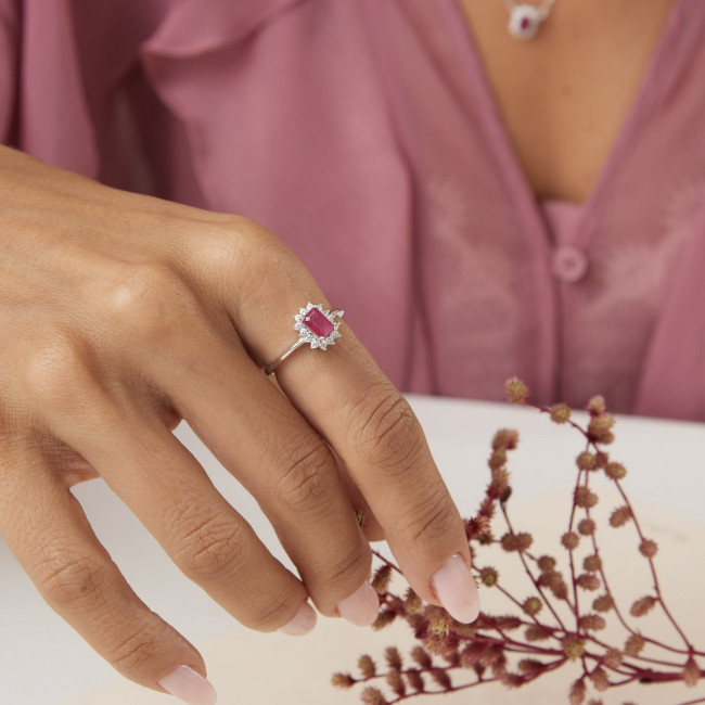 Anel com Rubi Natural e Moissanites, em Prata 925