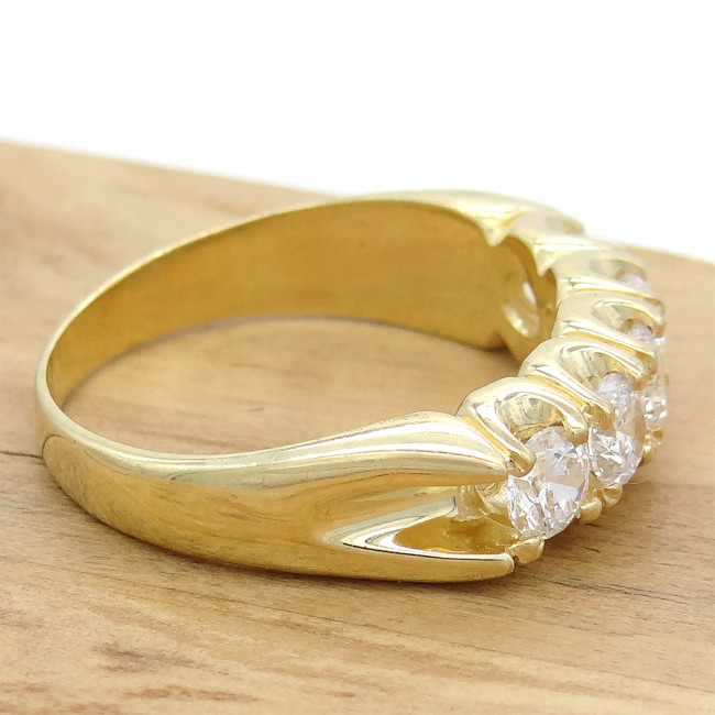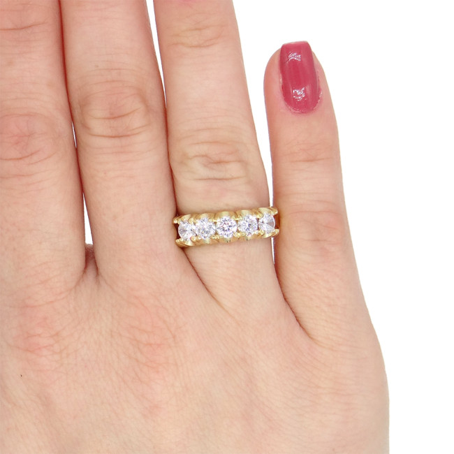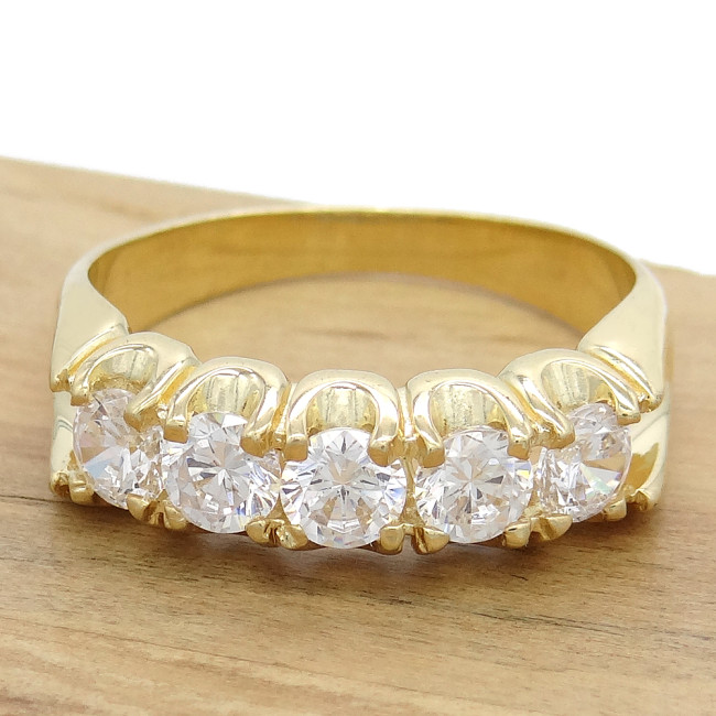 Meia Aliança com 5 Zircônias, em Prata 925 Folheado a Ouro Amarelo 18 Kilates