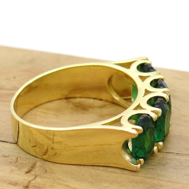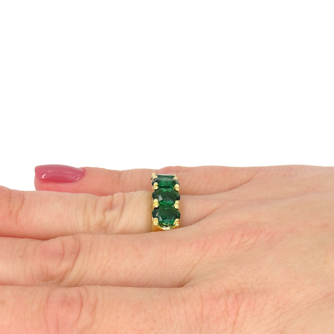 Meia Aliança com Blue Green, em Prata 925 Folheado a Ouro