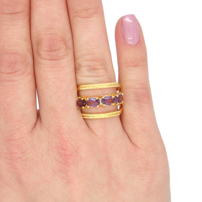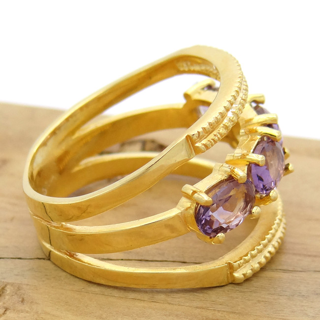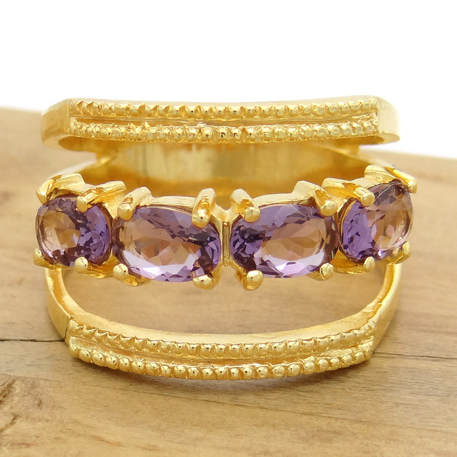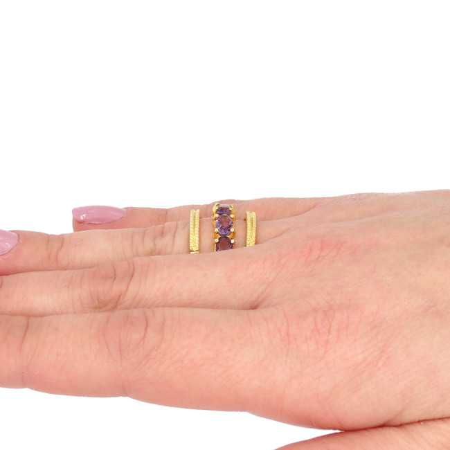 Meia Aliança com Ametista, em Prata 925 Folheado a Ouro