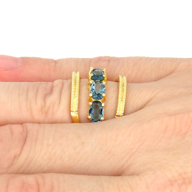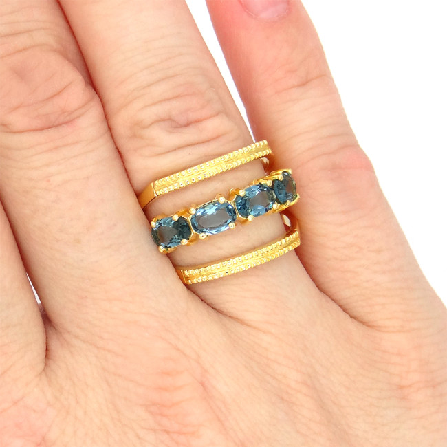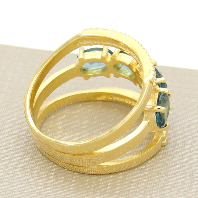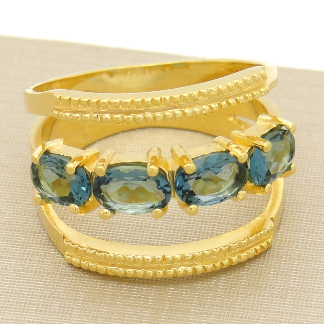 Meia Aliança com Cristais de Tanzanita, em Prata 925 Folheado a Ouro